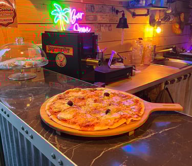 Venez dégustez nos pizzas maison (pâte fine et croustillante), nos hot-dogs, croques monsieur, croc' bacon, pizzas sucrées, le tout fait maison.
